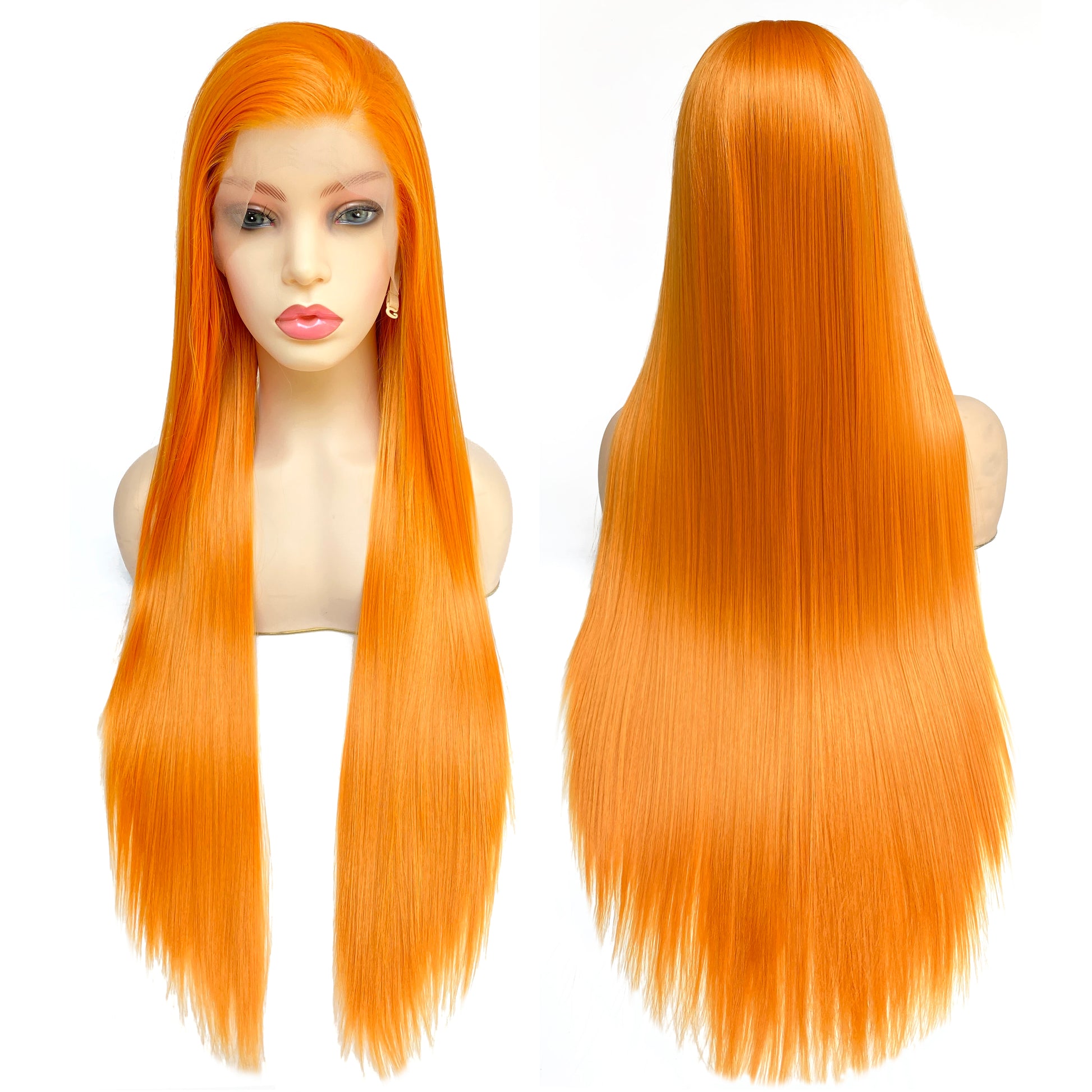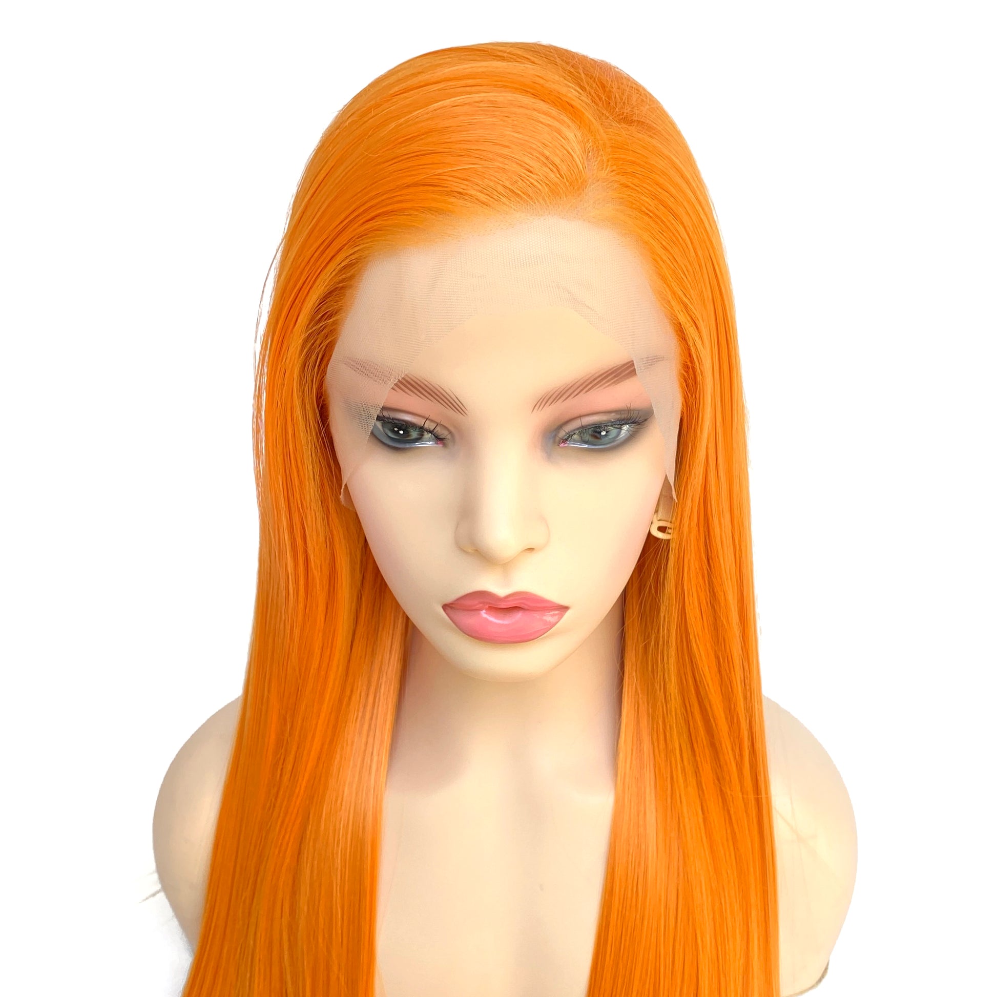 BEYOUNGER Bright Orange Color Long Straight Heat Resistant Wig 13x4 Lace Front Synthetic Wig
