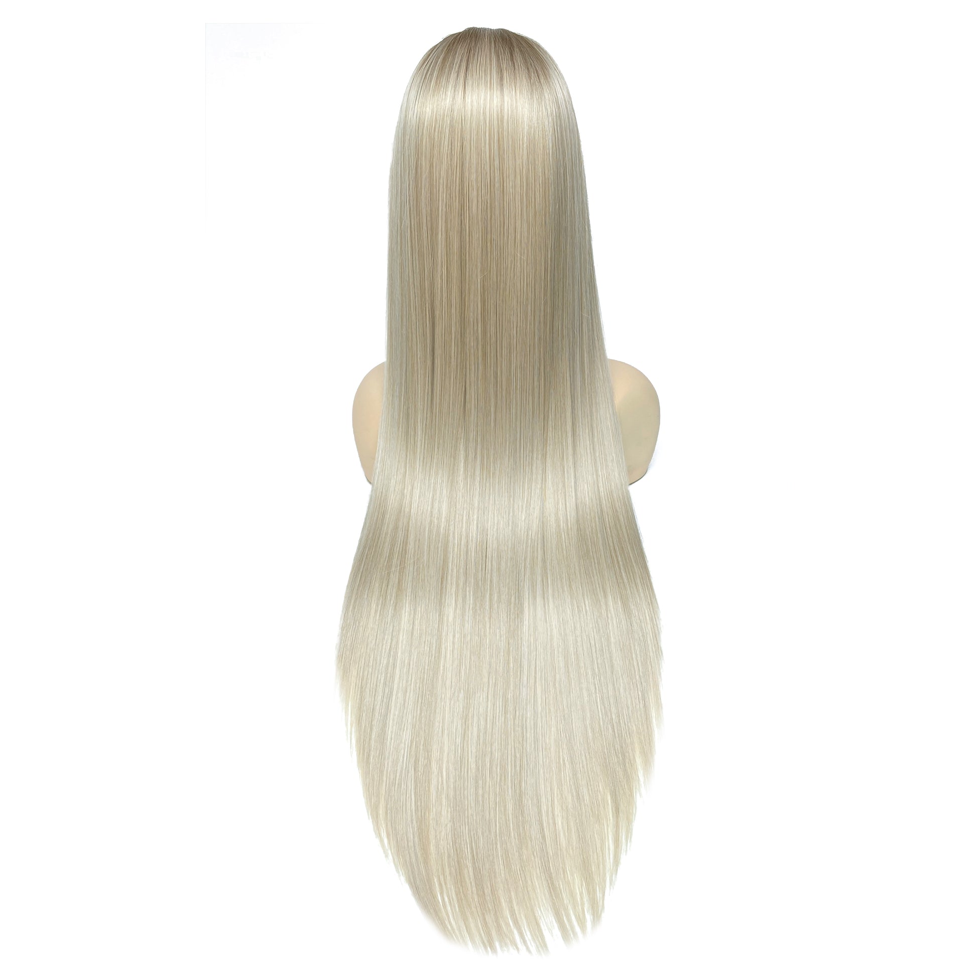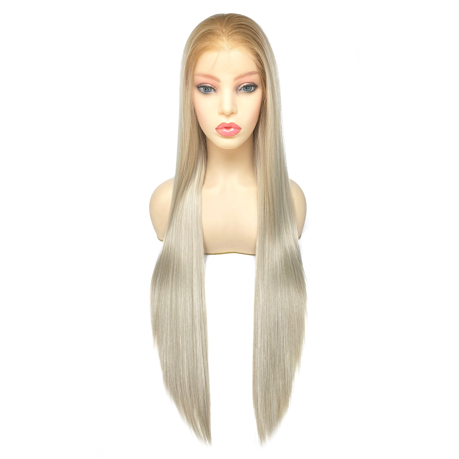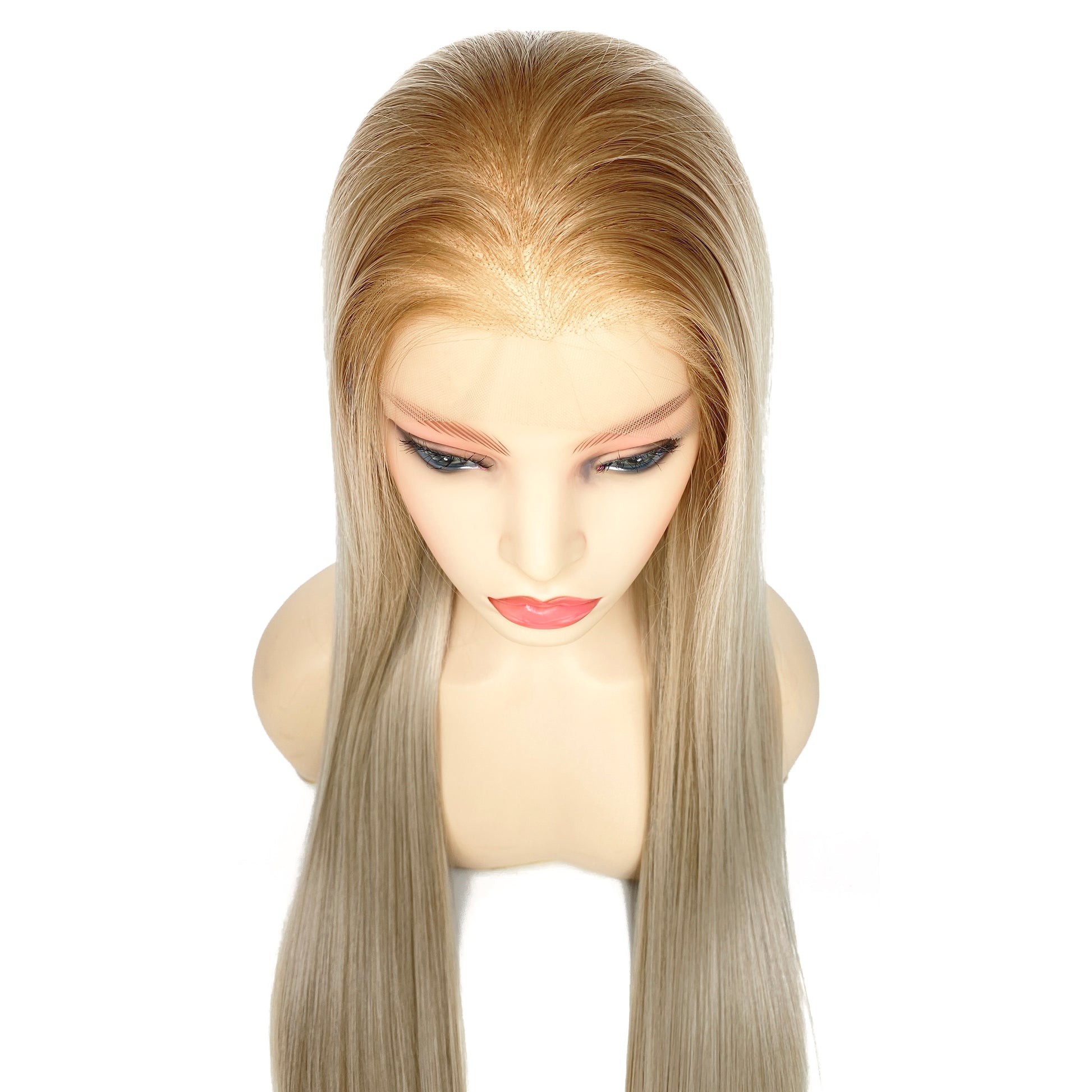 BEYOUNGER Light Ash Blonde Color Straight Heat Resistant Wig 13x4 Lace Front Synthetic Wig